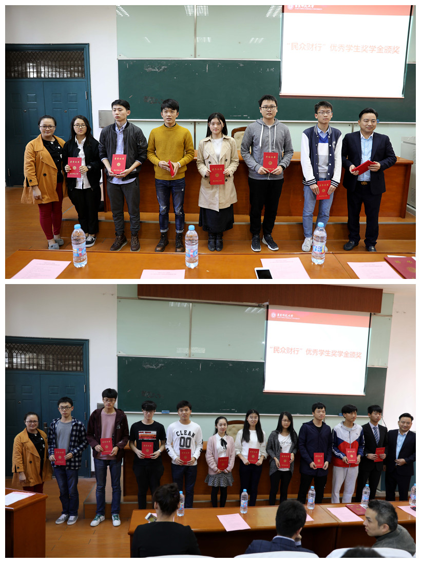 接下来,学院党委副书记洪燕宣布获奖学生名单,民众财行控股集团黄伟及洪燕副书记为获奖同学颁发证书。2015级本科生郭舒怡、2016级本科生毕冉分别代表获奖学生和团队发言,两位同学对民众财行控股集团企业设立此项奖学金表达真挚感谢,也同样感恩学院为学生的全面发展所创造的各项平台和机会。他们从校园文化和社会实践不同的角度诠释着自己对大学生活的思考,不论是“科技一夏,遇见未来”暑期支教志愿者还是从学习、工作、兴趣爱好融会贯通互为一体,多方位的发展自我,两位学子表达着要珍惜现在幸福的生活,享受着最好的社会资源和拥有优越条件的同时,不仅要努力发展自己,更要思考如何利用所学去帮助他人,为民族和国家的富强发展不懈努力。